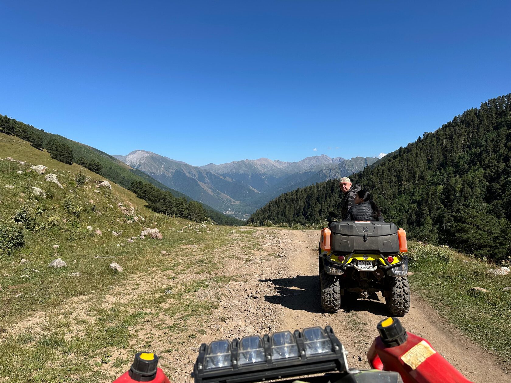 Суммарно за все дни было пройдено около 350 километров пути. На всем протяжении квадротура Карачаево-Черкесия радовала хорошей, солнечной погодой. Абсолютный восторг получали от разнообразия пейзажей. Видели и практически рекламные «Альпийские луга», и каменистые красноватые горы, как будто на «Марсе», и многовековые сосны, растущие сквозь скалистые породы, но больше всего поразили голубые горные озера, чистейшие, как слеза. Маршрут проходили на квадроцикле AODES 1000 MUD PRO 2023 года выпуска. Техника отлично прошла весь путь, без нареканий и поломок. С легкостью преодолели все крутые горные участки, броды и каменистые дорожки.