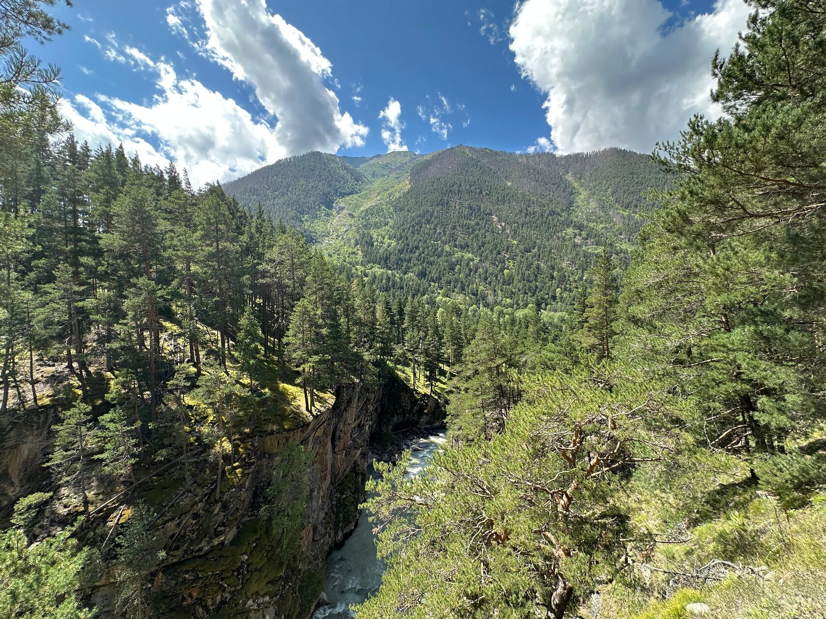 Виды даже в самом поселке впечатляют, он расположен в ущелье и укутан со всех сторон горными массивами.